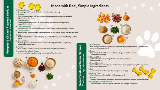 Welcome to EcoTail Pets™, where we believe that pets are family. Our mission is to provide eco-friendly, all-natural pet treats that are as healthy as they are delicious. At EcoTail Pets™, we go beyond pet nutrition by ensuring our treats are free from harmful additives, preservatives, and artificial flavors. We are committed to sustainability, using responsibly sourced ingredients and eco-friendly packaging. Whether you're looking for a tasty reward or a health-conscious snack, our Yumkins™ are crafted to keep your pets happy and healthy.